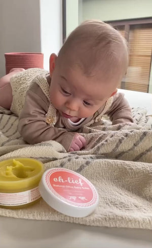 Oh-Lief Natural Olive Baby Balm is a naturally nourishing and gentle massage balm for your baby and family. It contains certified organic lavender oil which has a natural calming effect when used for massaging after bath time and before bedtime to pamper and help your little one relax for a peaceful sleep.